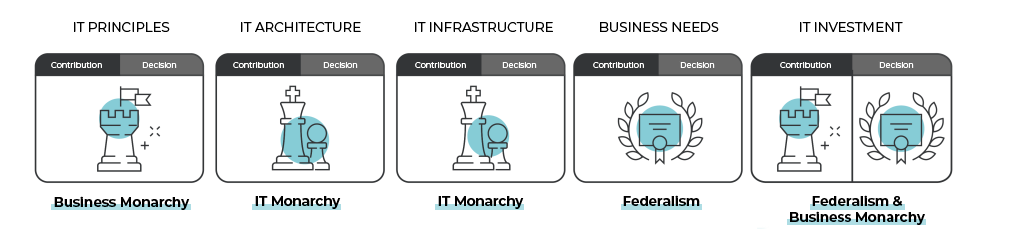 - Business needs based on the federalism archetype, meaning all areas, whether business or IT, must be involved in decision-making to support the organization’s strategic objectives.